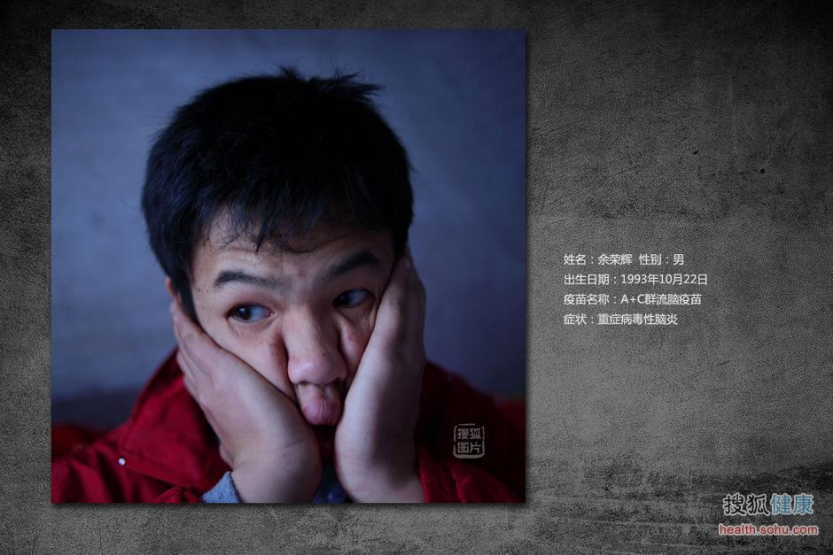 余同安是江门市新会区古井镇背坑村的一名普通农民。1987年初中毕业的他去了广州,在大酒店里打杂,并刻苦钻研厨艺,六年后出师。1993年,他的儿子余荣辉出生,这让他有了要安顿下来的想法,当年他就返回了江门,“那个时候我是全江门薪水最高的打工仔“,说到这一点,余同安露出了一点骄傲的神色,“打工的饭店给我8500,那是在93年啊,恐怕能拿到这个钱的全国都不太多吧。”不久,余同安还是辞职了,凭着他一手做鸡的绝活自立门户做起了生意,收入颇丰,儿子又聪慧懂事,一家人其乐融融。平静的生活在8年后被无情的打断。2005年3月11日下午,孩子在村小学被组织注射了A+C群流脑疫苗,到放学的时候走路都开始摇摇晃晃,身上发起低烧,余同安马上背起孩子去找了校长,校长也很紧张,打电话给防疫站,那边回复说没事,多喝水就好。烧慢慢退了,余同安却发现孩子身上出现越来越多的异常,先是会不由自主地用力眨眼,接着是没有征兆地呕吐,时常发呆。忙于生意的余同安并没有太在意。到了6月3日,情况突然恶化,孩子昏迷不醒,被紧急送到江门市人民医院抢救,医生诊断为“重症病毒性脑炎”。